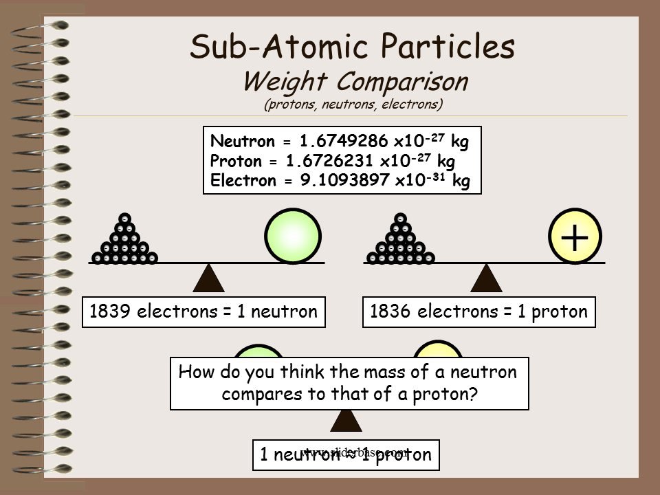 The nucleus is very much smaller than.. Protons have a positive (+) charge.an easy way to remember this is to remember that both proton and positive start with the letter p. neutrons have no electrical charge. Mass of proton is 1.67262192369(51)×10 −27 kg. An atom is composed of two regions: The subatomic particles that determine the mass of an atom are the proton and the neutron. Since the electron is so small compared to the proton and neutron we can say it has of 0 amu. Subatomic particles are the things that make up an atom. Dec 08, 2020 · charged subatomic particles. The nucleus is very much smaller than. Since carbon has exactly 6 protons and 6 neutrons, an atomic mass unit is equal the mass of one proton or one neutron... Since the electron is so small compared to the proton and neutron we can say it has of 0 amu.